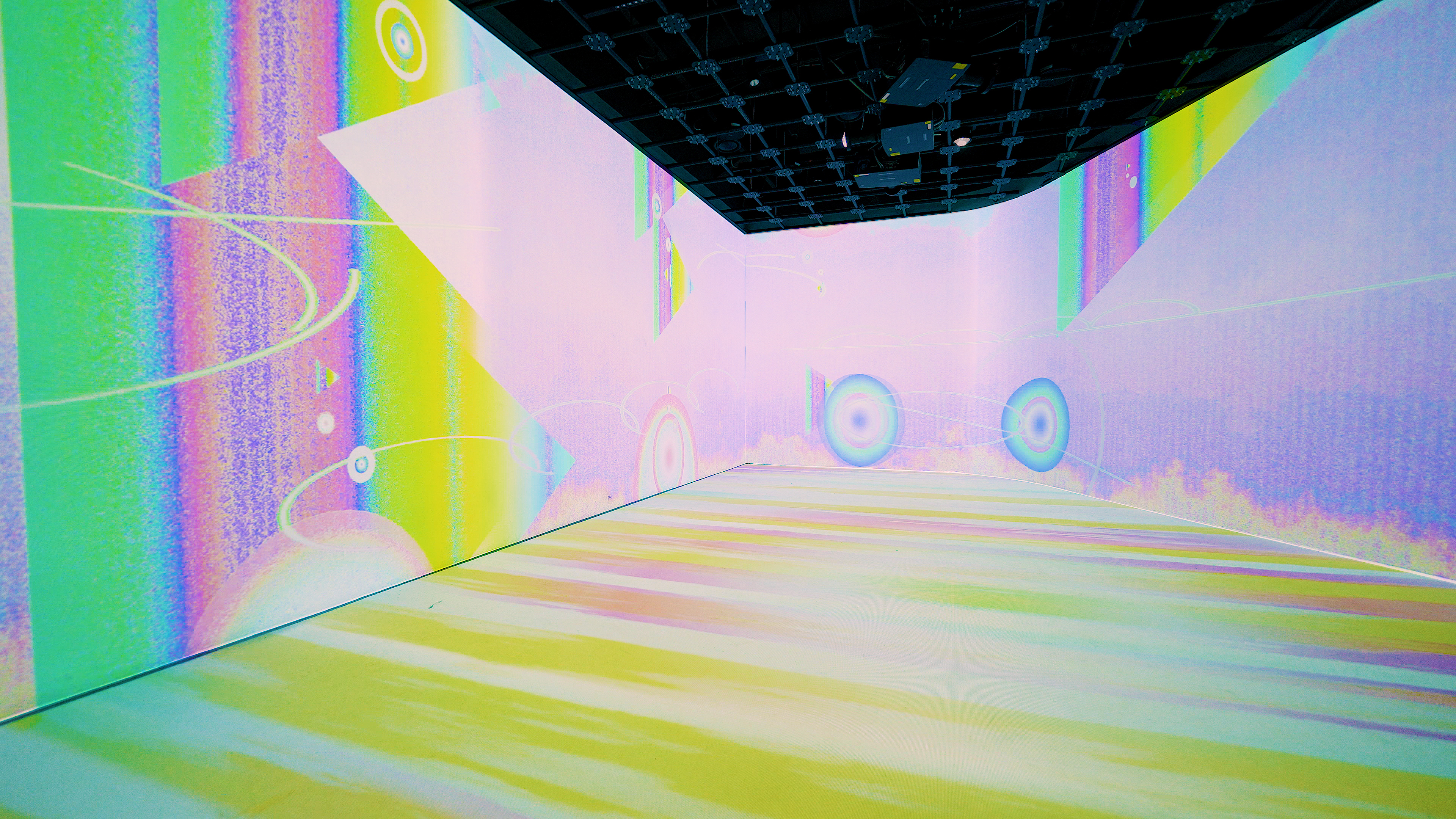 엠비언트 사운드에 따라 픽셀은 서서히 공간이 되고, 색은 숨처럼 흔들린다. 들리지 않는 리듬과 머뭇거리는 시간이 화면 위에 겹치며, 관객은 소리와 빛 사이에 잠시